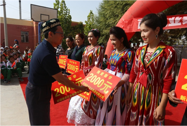 前往南疆库木萨克村,走访贫困户,为贫困学子 、贫困家庭捐赠爱心基金10万元